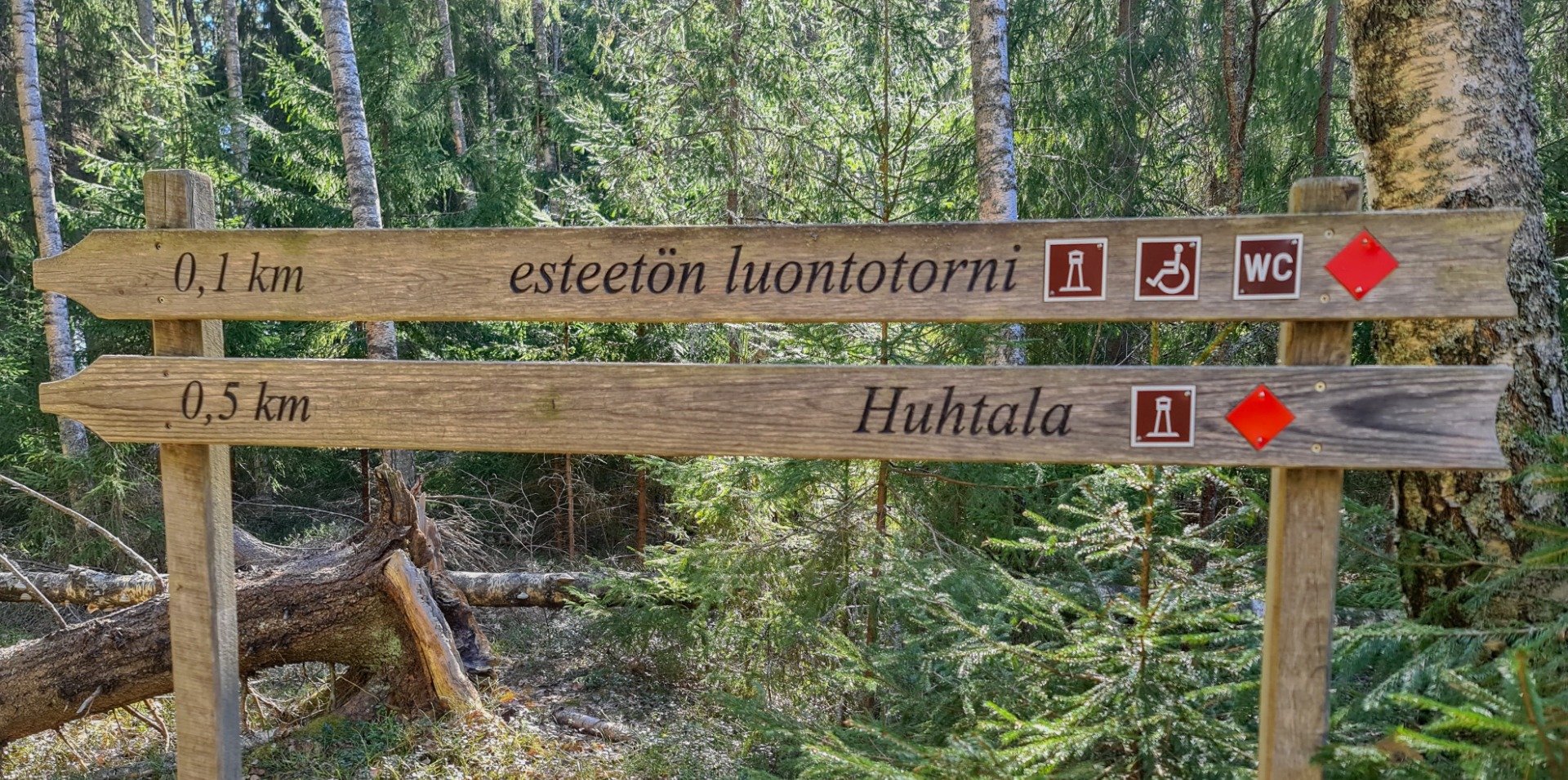 Matka jatkui Huhtalan luontotornilta Leveäkarin luontotornille metsäisessä maisemassa. Tällä osuudella reitti merkinnöissä oli epäselvyyttä. Pikkuisen eksyimme mutta emme hukkaan menneet. Metsässä näimme myös peuroja ja tielle saapuessa kevään ensimmäisiä värikkäitä perhosia.